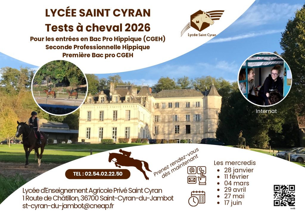Pour les entrées en classes de Seconde Professionnelle Hippique et Première Professionnelle CGEH, les prochains tests de sélection auront lieu les mercredis suivants :