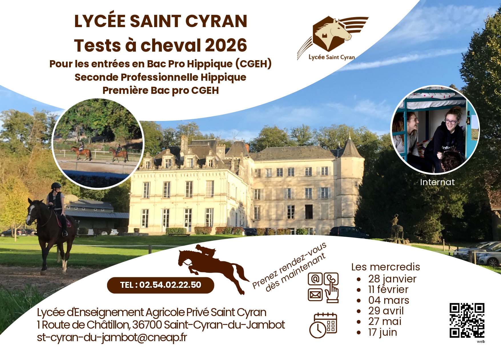 Après la journée Portes Ouvertes du 24 janvier 2026, le Lycée Saint Cyran vous accueillera aux dates suivantes :